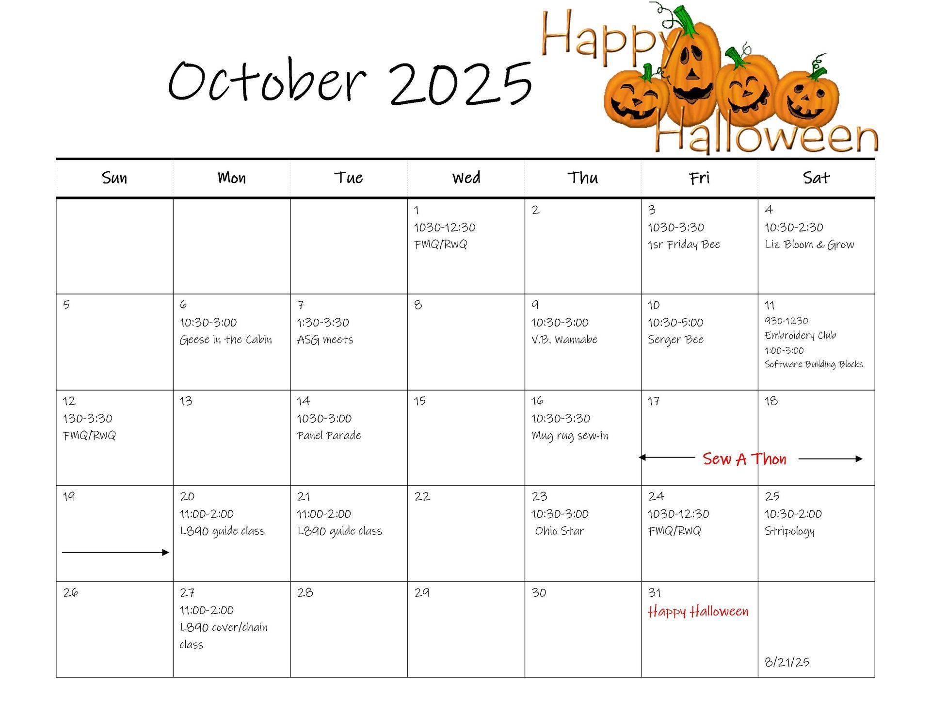 Serger Bees - Liz Peake, queen bee. Come join us to finish a project or start a new project and review future projects on the calendar. Each month will present an optional Serger Bee Plus project – demonstration / directions provided to serge during the Bee or at home. Registered attendees will receive the Bee Plus supply list before the Bee. Every third Saturday of the month, 10:30-2:30.